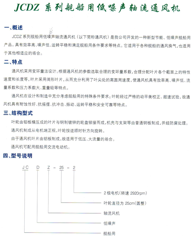 首頁 > 產(chǎn)品信息 > 船用風(fēng)機(jī) > 艦船用低噪聲軸流通風(fēng)機(jī) > JCDZ艦船用低噪聲軸流通風(fēng)機(jī)